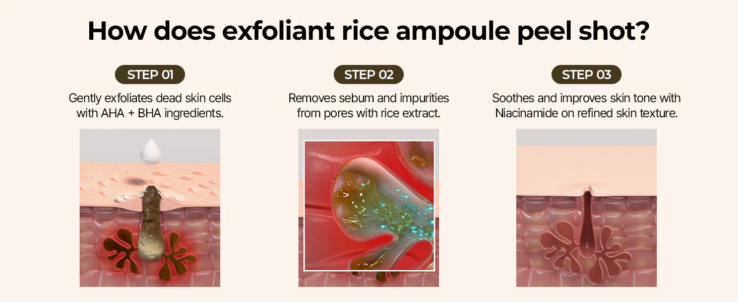 Powered by AHA, BHA, fermented rice extract, and niacinamide, this ampoule gently exfoliates, clears out pores, and restores your glow — all in one simple step.